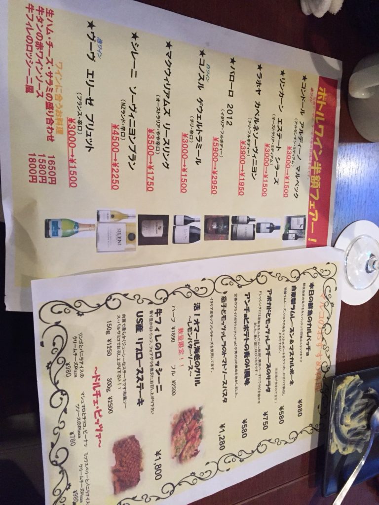今日はボトル半額フェアもやっていました。案内として一緒にもらった本日のオススメの中から、