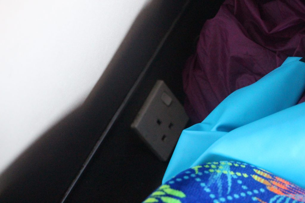 そして嬉しいことに窓際の席はコンセント口がついています。これで充電もばっちりできます。