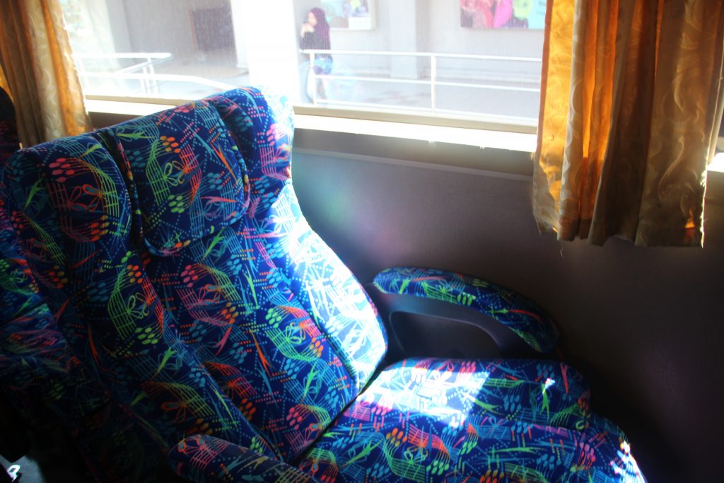 バスのシートはゆったりとしていて席がひっついているタイプのものではなく独立している座席。