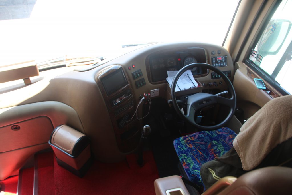 バスの運転席は乗客の席より位置が下にある作りです。
